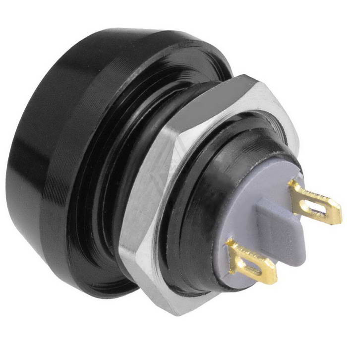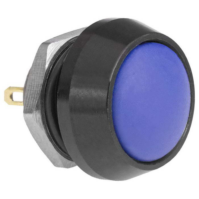 Кнопка антивандальная без подсветки RUICHI GQ12B-10/J/B/Bl/N, 1NO, ОFF-(ON) без фиксации, пос. диаметр 12 мм, контакты 2Pin, 2 А, 50 мОм, -20...+55 °C, корпус пластиковый черный, кнопка синяя максимально долговечна и надежна. Устройство способно безотказно работать при частой эксплуатации и самых тяжелых условиях. Именно поэтому такие кнопки устанавливаются в тех местах, где существует повышенный риск повреждения, например, на производственных предприятиях или объектах с большой проходимостью людей. Антивандальные кнопки часто можно встретить в лифтах, около входных дверей зданий или метрополитене.