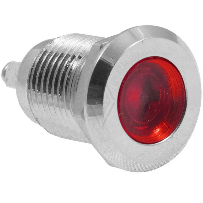 Индикатор антивандальный RUICHI GQ12D-R, красный, M12, IP65, никелированная латунь применяется для отображения электрических процессов происходящих в приборах и аппаратуре. Устройство способно безотказно работать при частой эксплуатации и самых тяжелых условиях. Именно поэтому такие индикаторы устанавливаются в тех местах, где существует повышенный риск повреждения.