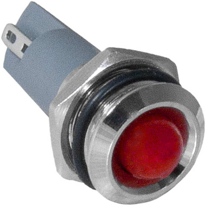 Индикатор антивандальный RUICHI GQ12PR-R, цвет красный, точечный излучатель, 12-24 В, 15 мА, гибкие выводы, никелированная латунь - это источник света для демонстрации электрических процессов в приборах. Конструктивно представляет собой модуль индикации, оснащенный контактным блоком, к которому припаиваются или присоединяются проводники.
