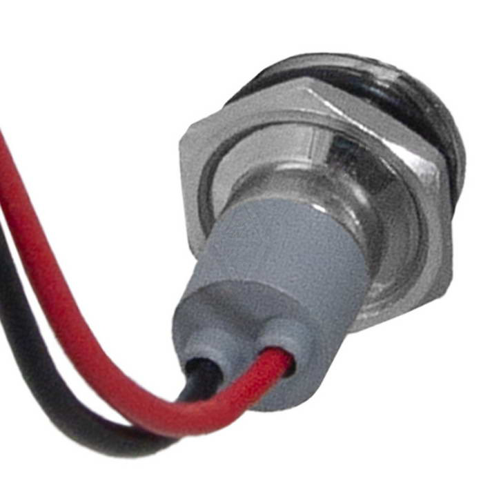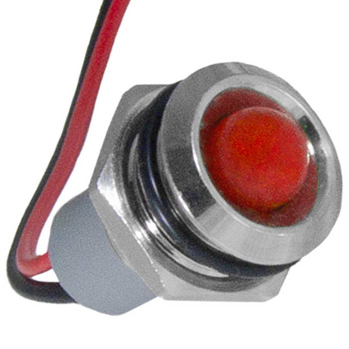 Индикатор антивандальный RUICHI GQ14WR-R, цвет красный, точечный излучатель, 12-24 В, 15 мА, гибкие выводы, никелированная латунь - это источник света для демонстрации электрических процессов в приборах. Конструктивно представляет собой модуль индикации, оснащенный контактным блоком, к которому припаиваются или присоединяются проводники.