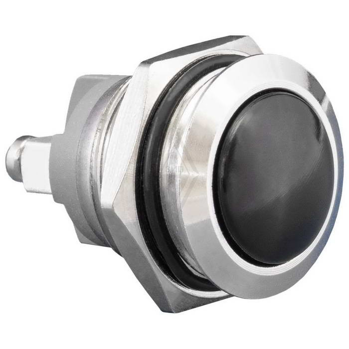 Кнопка антивандальная без подсветки RUICHI GQ16B-10/B/N, 1NO, ОFF-(ON) без фиксации, пос. диаметр 16 мм, контакты 2S, 2 А, 50 мОм, -20...+55 °C, корпус никелированная латунь, кнопка черная максимально долговечна и надежна. Устройство способно безотказно работать при частой эксплуатации и самых тяжелых условиях. Именно поэтому такие кнопки устанавливаются в тех местах, где существует повышенный риск повреждения, например, на производственных предприятиях или объектах с большой проходимостью людей. Антивандальные кнопки часто можно встретить в лифтах, около входных дверей зданий или метрополитене.