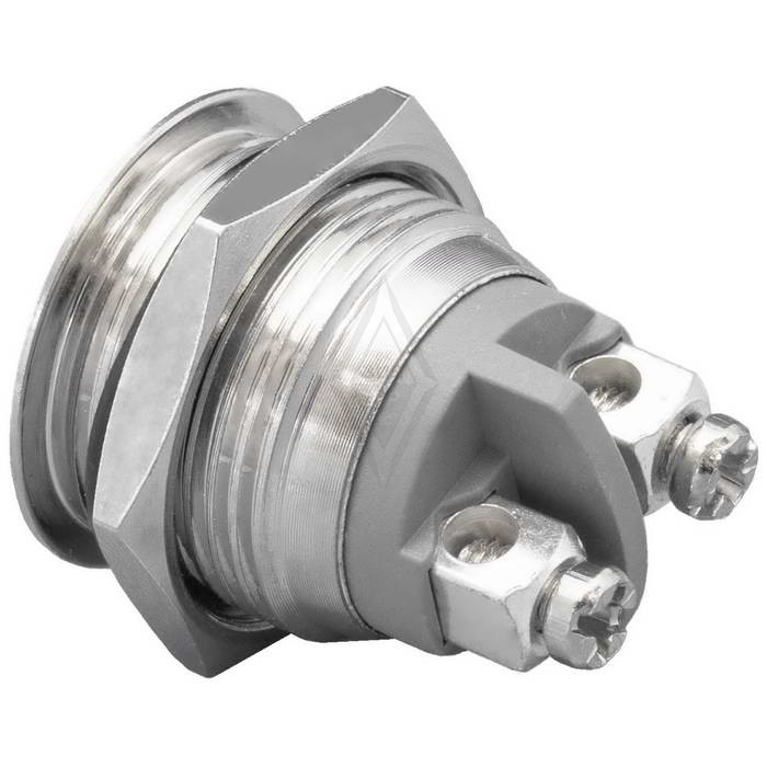 Кнопка антивандальная без подсветки RUICHI GQ16B-10/Bl/N, 1NO, ОFF-(ON) без фиксации, пос. диаметр 16 мм, контакты 2S, 2 А, 50 мОм, -20...+55 °C, корпус никелированная латунь, кнопка синяя максимально долговечна и надежна. Устройство способно безотказно работать при частой эксплуатации и самых тяжелых условиях. Именно поэтому такие кнопки устанавливаются в тех местах, где существует повышенный риск повреждения, например, на производственных предприятиях или объектах с большой проходимостью людей. Антивандальные кнопки часто можно встретить в лифтах, около входных дверей зданий или метрополитене.