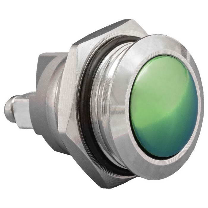 Кнопка антивандальная без подсветки RUICHI GQ16B-10/G/N, 1NO, ОFF-(ON) без фиксации, пос. диаметр 16 мм, контакты 2S, 2 А, 50 мОм, -20...+55 °C, корпус никелированная латунь, кнопка зеленая максимально долговечна и надежна. Устройство способно безотказно работать при частой эксплуатации и самых тяжелых условиях. Именно поэтому такие кнопки устанавливаются в тех местах, где существует повышенный риск повреждения, например, на производственных предприятиях или объектах с большой проходимостью людей. Антивандальные кнопки часто можно встретить в лифтах, около входных дверей зданий или метрополитене.