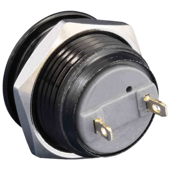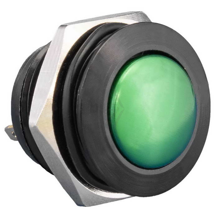 Кнопка антивандальная без подсветки RUICHI GQ16B-10/J/B/G/N, 1NO, ОFF-(ON) без фиксации, пос. диаметр 16 мм, контакты 2Pin, 2 А, 50 мОм, -20...+55 °C, корпус пластиковый черный, кнопка зеленая максимально долговечна и надежна. Устройство способно безотказно работать при частой эксплуатации и самых тяжелых условиях. Именно поэтому такие кнопки устанавливаются в тех местах, где существует повышенный риск повреждения, например, на производственных предприятиях или объектах с большой проходимостью людей. Антивандальные кнопки часто можно встретить в лифтах, около входных дверей зданий или метрополитене.