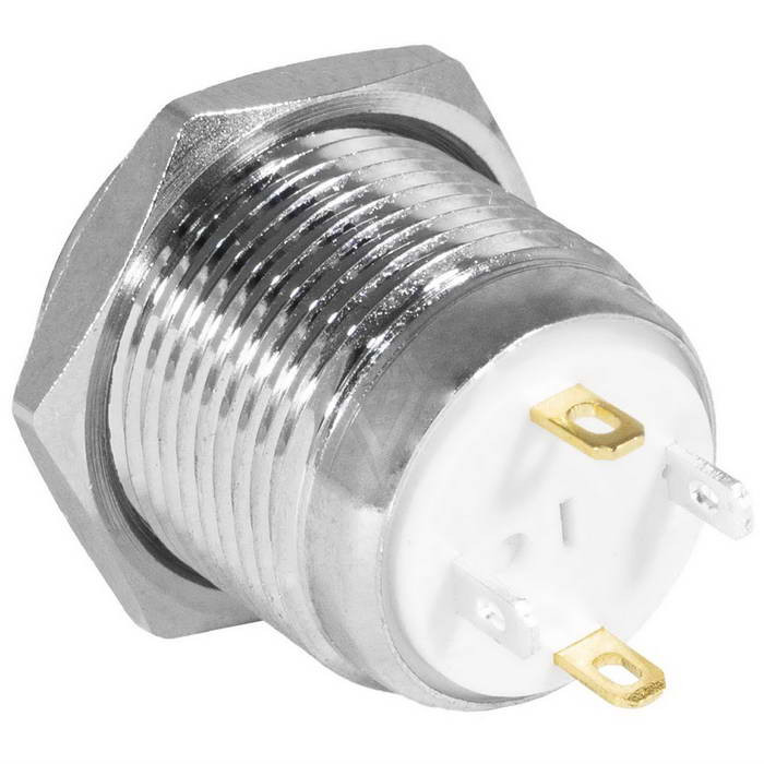 Кнопка антивандальная RUICHI GQ16B-10D/J/G/N, OFF-(ON), рабочая температура -25…+55 °C, никелированная латунь максимально долговечна и надежна. Устройство способно безотказно работать при частой эксплуатации и самых тяжелых условиях. Именно поэтому такие кнопки устанавливаются в тех местах, где существует повышенный риск повреждения, например, на производственных предприятиях или объектах с большой проходимостью людей. Антивандальные кнопки часто можно встретить в лифтах, около входных дверей зданий или метрополитене.