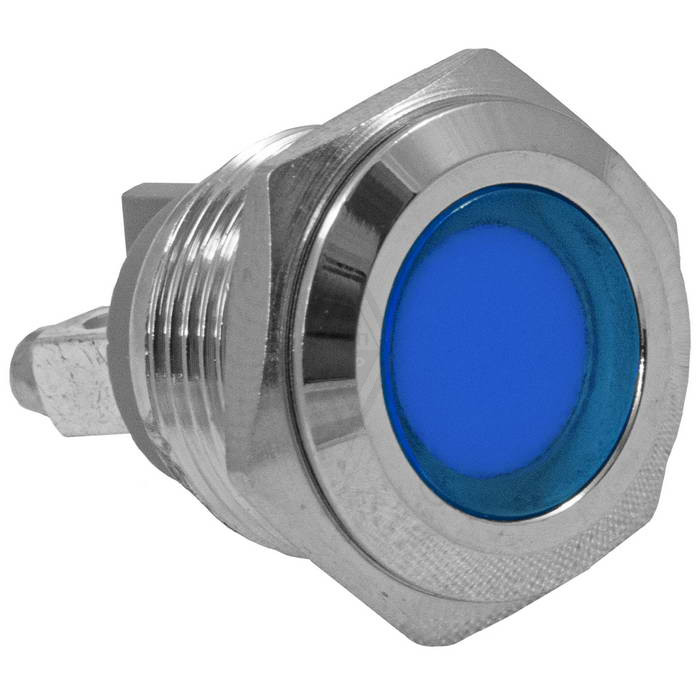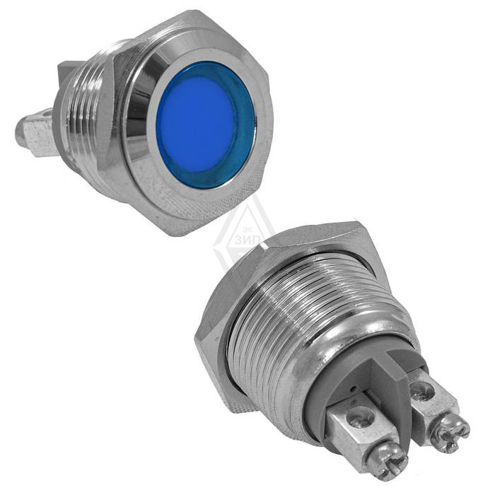 Индикатор антивандальный RUICHI GQ16F-B, синий, M16, IP65, никелированная латунь применяется для отображения электрических процессов происходящих в приборах и аппаратуре. Устройство способно безотказно работать при частой эксплуатации в самых тяжелых условиях. Именно поэтому такие индикаторы устанавливаются в тех местах, где существует повышенный риск повреждения.