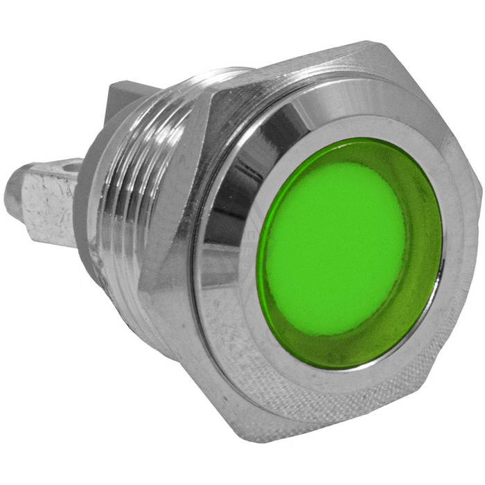 Индикатор антивандальный RUICHI GQ16F-G, зеленый, M16, IP65, никелированная латунь применяется для отображения электрических процессов происходящих в приборах и аппаратуре. Устройство способно безотказно работать при частой эксплуатации в самых тяжелых условиях. Именно поэтому такие индикаторы устанавливаются в тех местах, где существует повышенный риск повреждения.