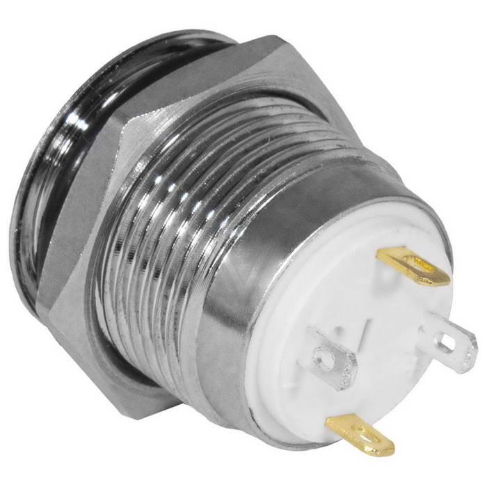 Кнопка антивандальная RUICHI GQ16H-10/J/G/N, OFF-(ON), рабочая температура -25…+55 °C, никелированная латунь максимально долговечна и надежна. Устройство способно безотказно работать при частой эксплуатации и самых тяжелых условиях. Именно поэтому такие кнопки устанавливаются в тех местах, где существует повышенный риск повреждения, например, на производственных предприятиях или объектах с большой проходимостью людей. Антивандальные кнопки часто можно встретить в лифтах, около входных дверей зданий или метрополитене.
