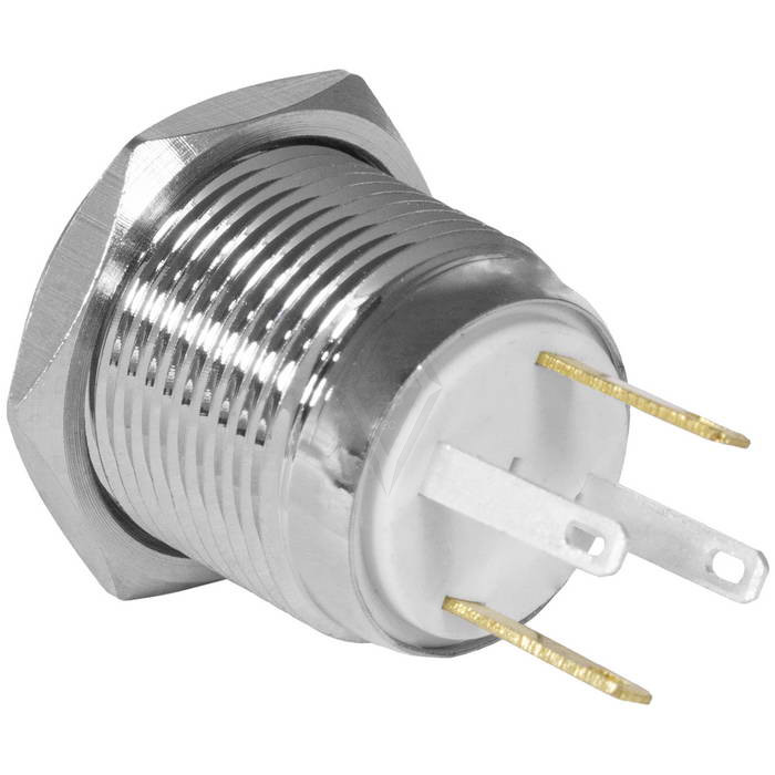 Кнопка антивандальная RUICHI GQ16H-10D/JL/B/N, OFF-(ON), рабочая температура -25…+55 °C, никелированная латунь максимально долговечна и надежна. Устройство способно безотказно работать при частой эксплуатации и самых тяжелых условиях. Именно поэтому такие кнопки устанавливаются в тех местах, где существует повышенный риск повреждения, например, на производственных предприятиях или объектах с большой проходимостью людей. Антивандальные кнопки часто можно встретить в лифтах, около входных дверей зданий или метрополитене.