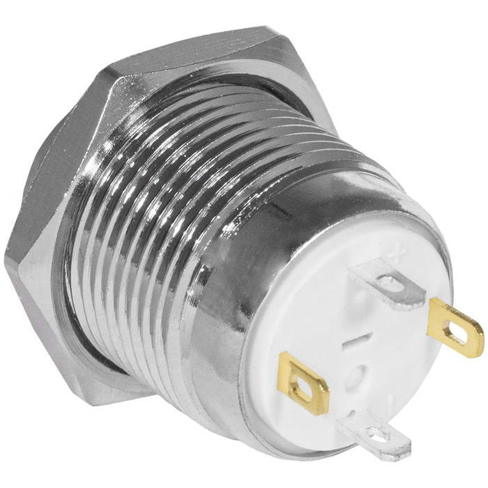 Кнопка антивандальная RUICHI GQ16H-10E/J/G/N, OFF-(ON), рабочая температура -25…+55 °C, никелированная латунь максимально долговечна и надежна. Устройство способно безотказно работать при частой эксплуатации и самых тяжелых условиях. Именно поэтому такие кнопки устанавливаются в тех местах, где существует повышенный риск повреждения, например, на производственных предприятиях или объектах с большой проходимостью людей. Антивандальные кнопки часто можно встретить в лифтах, около входных дверей зданий или метрополитене.