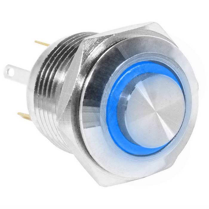 Кнопка антивандальная RUICHI GQ16H-10E/JL/B/N, OFF-(ON), рабочая температура -25…+55 °C, никелированная латунь максимально долговечна и надежна. Устройство способно безотказно работать при частой эксплуатации и самых тяжелых условиях. Именно поэтому такие кнопки устанавливаются в тех местах, где существует повышенный риск повреждения, например, на производственных предприятиях или объектах с большой проходимостью людей. Антивандальные кнопки часто можно встретить в лифтах, около входных дверей зданий или метрополитене.