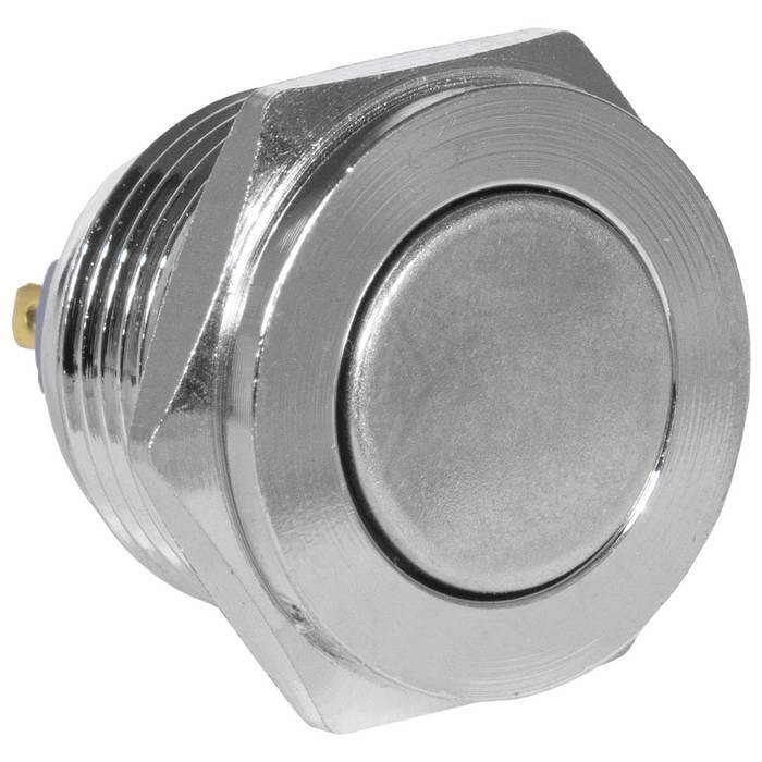Кнопка антивандальная RUICHI GQ16PF-10/J/N, OFF-(ON), рабочая температура -25…+55 °C, никелированная латунь максимально долговечна и надежна. Устройство способно безотказно работать при частой эксплуатации и самых тяжелых условиях. Именно поэтому такие кнопки устанавливаются в тех местах, где существует повышенный риск повреждения, например, на производственных предприятиях или объектах с большой проходимостью людей. Антивандальные кнопки часто можно встретить в лифтах, около входных дверей зданий или метрополитене.