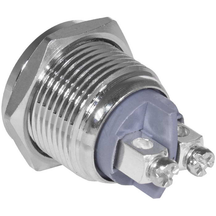 Кнопка антивандальная RUICHI GQ16PF-10/N, OFF-(ON), рабочая температура -25…+55 °C, никелированная латунь максимально долговечна и надежна. Устройство способно безотказно работать при частой эксплуатации и самых тяжелых условиях. Именно поэтому такие кнопки устанавливаются в тех местах, где существует повышенный риск повреждения, например, на производственных предприятиях или объектах с большой проходимостью людей. Антивандальные кнопки часто можно встретить в лифтах, около входных дверей зданий или метрополитене.