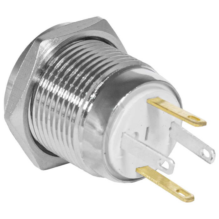 Кнопка антивандальная RUICHI GQ16PF-10D/JL/B/N, OFF-(ON), рабочая температура -25…+55 °C, никелированная латунь максимально долговечна и надежна. Устройство способно безотказно работать при частой эксплуатации и самых тяжелых условиях. Именно поэтому такие кнопки устанавливаются в тех местах, где существует повышенный риск повреждения, например, на производственных предприятиях или объектах с большой проходимостью людей. Антивандальные кнопки часто можно встретить в лифтах, около входных дверей зданий или метрополитене.