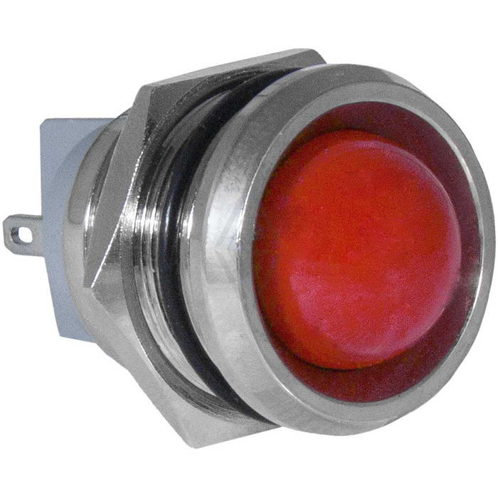 Индикатор антивандальный RUICHI GQ16PR-R, цвет красный, точечный излучатель, 12-24 В, 15 мА, гибкие выводы, никелированная латунь - это источник света для демонстрации электрических процессов в приборах. Конструктивно представляет собой модуль индикации, оснащенный контактным блоком, к которому припаиваются или присоединяются проводники.