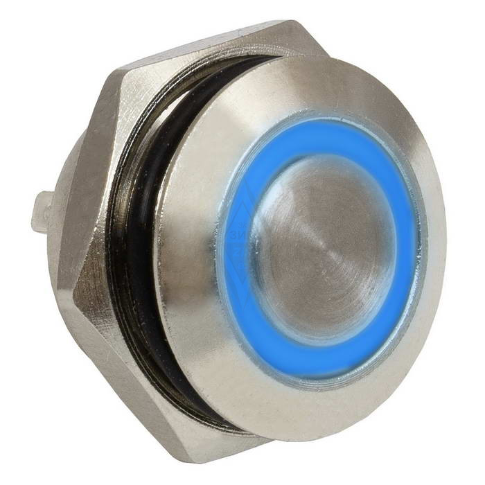 Кнопка антивандальная с подсветкой RUICHI GQ16TF-10E/B/N, OFF-(ON), рабочая температура -25…+55 °C, никелированная латунь, короткая, синяя подсветка максимально долговечна и надежна. Устройство способно безотказно работать при частой эксплуатации и самых тяжелых условиях. Именно поэтому такие кнопки устанавливаются в тех местах, где существует повышенный риск повреждения, например, на производственных предприятиях или объектах с большой проходимостью людей. Антивандальные кнопки часто можно встретить в лифтах, около входных дверей зданий или метрополитене.