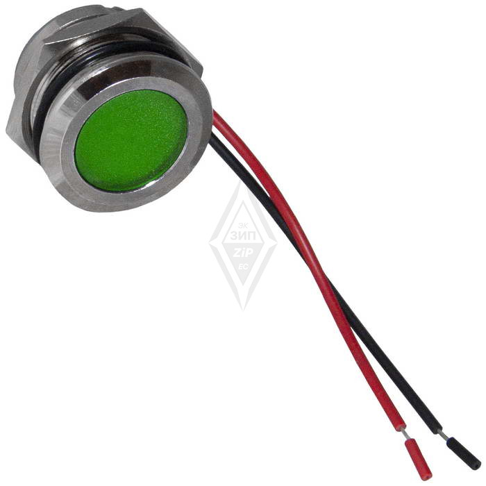 Индикатор антивандальный RUICHI GQ16WF-G, цвет зеленый, точечный излучатель, 12-24 В, 15 мА, гибкие выводы, никелированная латунь - это источник света для демонстрации электрических процессов в приборах. Конструктивно представляет собой модуль индикации, оснащенный контактным блоком, к которому припаиваются или присоединяются проводники.