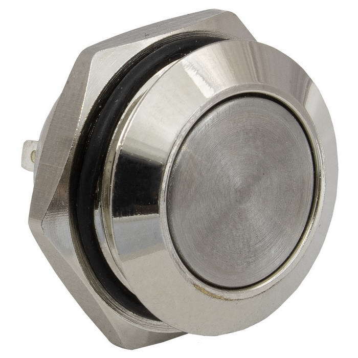 Кнопка антивандальная без подсветки RUICHI GQ19TF-10/J/N, OFF-(ON), рабочая температура -25…+55 °C, никелированная латунь, короткая максимально долговечна и надежна. Устройство способно безотказно работать при частой эксплуатации и самых тяжелых условиях. Именно поэтому такие кнопки устанавливаются в тех местах, где существует повышенный риск повреждения, например, на производственных предприятиях или объектах с большой проходимостью людей. Антивандальные кнопки часто можно встретить в лифтах, около входных дверей зданий или метрополитене.