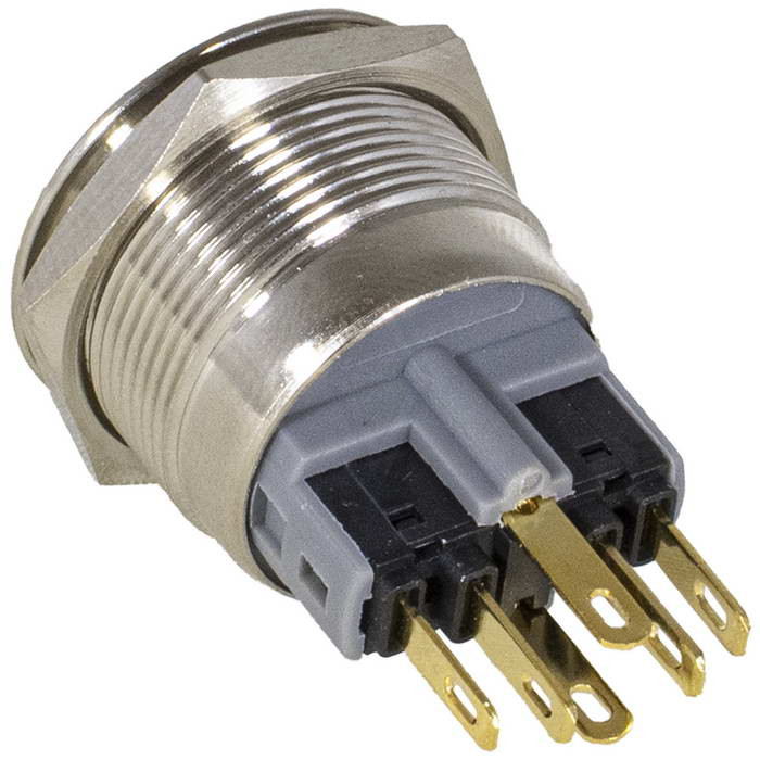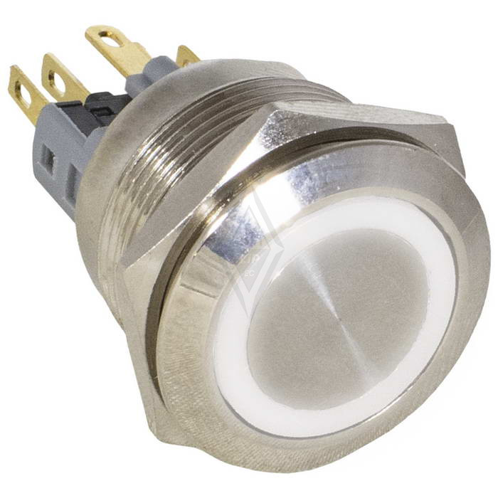 Кнопка антивандальная RUICHI GQ22-11E/W/N, ON-(OFF)+OFF-(ON), рабочая температура -25…+55 °C, никелированная латунь максимально долговечна и надежна. Устройство способно безотказно работать при частой эксплуатации и самых тяжелых условиях. Именно поэтому такие кнопки устанавливаются в тех местах, где существует повышенный риск повреждения, например, на производственных предприятиях или объектах с большой проходимостью людей. Антивандальные кнопки часто можно встретить в лифтах, около входных дверей зданий или метрополитене.