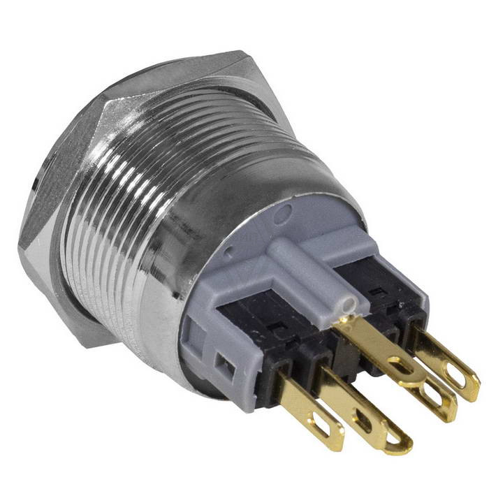 Кнопка антивандальная с подсветкой RUICHI GQ22-11ZD/R on-off+off-on, М22, IP65, никелированная латунь максимально долговечна и надежна. Устройство способно безотказно работать при частой эксплуатации и самых тяжелых условиях. Именно поэтому такие кнопки устанавливаются в тех местах, где существует повышенный риск повреждения, например, на производственных предприятиях или объектах с большой проходимостью людей. Антивандальные кнопки часто можно встретить в лифтах, около входных дверей зданий или метрополитене.