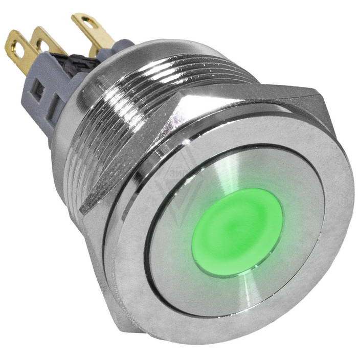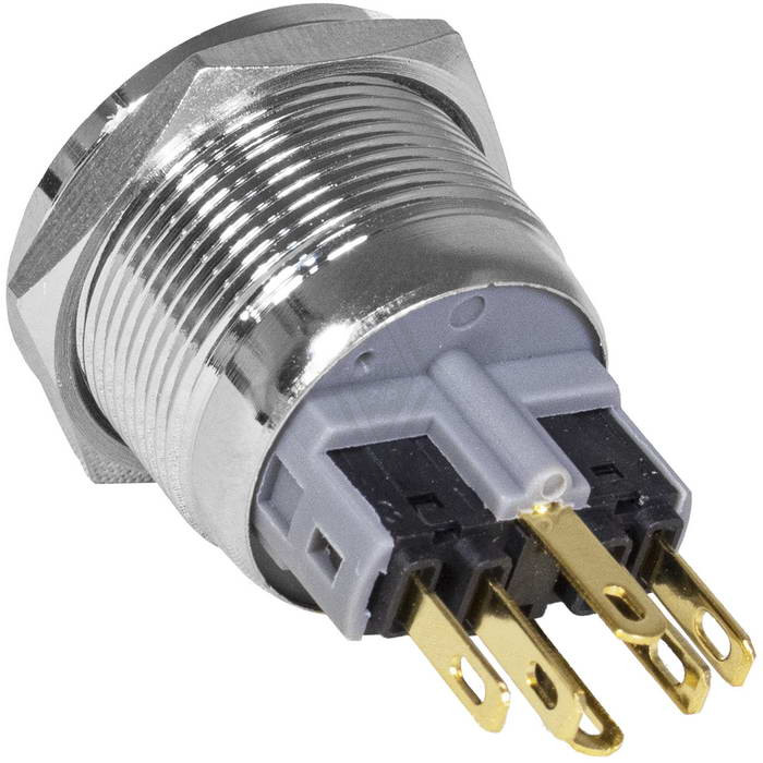 Кнопка антивандальная RUICHI GQ22PF-11D/G/N, ON-(OFF)+OFF-(ON), рабочая температура -25…+55 °C, никелированная латунь максимально долговечна и надежна. Устройство способно безотказно работать при частой эксплуатации и самых тяжелых условиях. Именно поэтому такие кнопки устанавливаются в тех местах, где существует повышенный риск повреждения, например, на производственных предприятиях или объектах с большой проходимостью людей. Антивандальные кнопки часто можно встретить в лифтах, около входных дверей зданий или метрополитене.