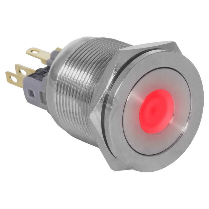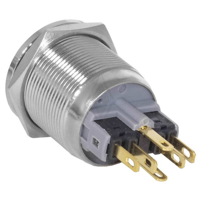 Кнопка антивандальная RUICHI GQ22PF-11D/R/N, ON-(OFF)+OFF-(ON), рабочая температура -25…+55 °C, никелированная латунь максимально долговечна и надежна. Устройство способно безотказно работать при частой эксплуатации и самых тяжелых условиях. Именно поэтому такие кнопки устанавливаются в тех местах, где существует повышенный риск повреждения, например, на производственных предприятиях или объектах с большой проходимостью людей. Антивандальные кнопки часто можно встретить в лифтах, около входных дверей зданий или метрополитене.