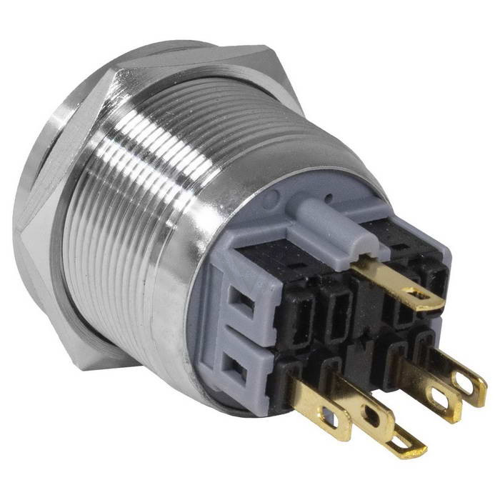 Кнопка антивандальная RUICHI GQ25PF-11D/B/N, ON-(OFF)+OFF-(ON), рабочая температура -25…+55 °C, никелированная латунь максимально долговечна и надежна. Устройство способно безотказно работать при частой эксплуатации и самых тяжелых условиях. Именно поэтому такие кнопки устанавливаются в тех местах, где существует повышенный риск повреждения, например, на производственных предприятиях или объектах с большой проходимостью людей. Антивандальные кнопки часто можно встретить в лифтах, около входных дверей зданий или метрополитене.