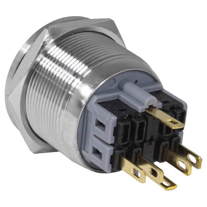Кнопка антивандальная RUICHI GQ25PF-11D/G/N, ON-(OFF)+OFF-(ON), рабочая температура -25…+55 °C, никелированная латунь максимально долговечна и надежна. Устройство способно безотказно работать при частой эксплуатации и самых тяжелых условиях. Именно поэтому такие кнопки устанавливаются в тех местах, где существует повышенный риск повреждения, например, на производственных предприятиях или объектах с большой проходимостью людей. Антивандальные кнопки часто можно встретить в лифтах, около входных дверей зданий или метрополитене.