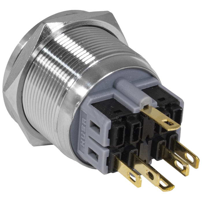 Кнопка антивандальная RUICHI GQ25PF-11ZE/R/N, ON-OFF+OFF-ON, рабочая температура -25…+55 °C, никелированная латунь максимально долговечна и надежна. Устройство способно безотказно работать при частой эксплуатации и самых тяжелых условиях. Именно поэтому такие кнопки устанавливаются в тех местах, где существует повышенный риск повреждения, например, на производственных предприятиях или объектах с большой проходимостью людей. Антивандальные кнопки часто можно встретить в лифтах, около входных дверей зданий или метрополитене.