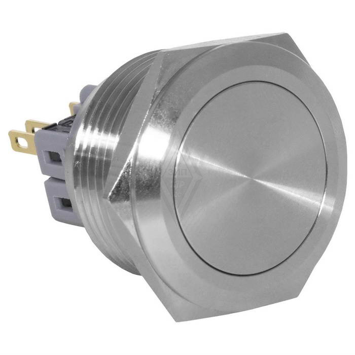 Кнопка антивандальная RUICHI GQ28-11/N, ON-(OFF)+OFF-(ON), рабочая температура -25…+55 °C, никелированная латунь максимально долговечна и надежна. Устройство способно безотказно работать при частой эксплуатации и самых тяжелых условиях. Именно поэтому такие кнопки устанавливаются в тех местах, где существует повышенный риск повреждения, например, на производственных предприятиях или объектах с большой проходимостью людей. Антивандальные кнопки часто можно встретить в лифтах, около входных дверей зданий или метрополитене.