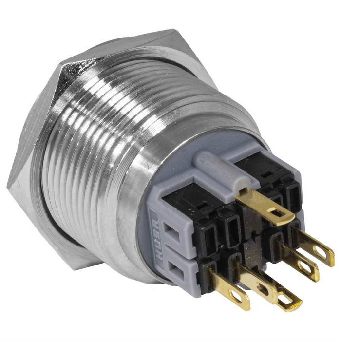 Кнопка антивандальная RUICHI GQ28-11ZD/B/N, ON-OFF+OFF-ON, рабочая температура -25…+55 °C, никелированная латунь максимально долговечна и надежна. Устройство способно безотказно работать при частой эксплуатации и самых тяжелых условиях. Именно поэтому такие кнопки устанавливаются в тех местах, где существует повышенный риск повреждения, например, на производственных предприятиях или объектах с большой проходимостью людей. Антивандальные кнопки часто можно встретить в лифтах, около входных дверей зданий или метрополитене.