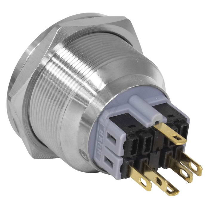 Кнопка антивандальная RUICHI GQ28PF-11ZE/R/N, ON-OFF+OFF-ON, рабочая температура -25…+55 °C, никелированная латунь максимально долговечна и надежна. Устройство способно безотказно работать при частой эксплуатации и самых тяжелых условиях. Именно поэтому такие кнопки устанавливаются в тех местах, где существует повышенный риск повреждения, например, на производственных предприятиях или объектах с большой проходимостью людей. Антивандальные кнопки часто можно встретить в лифтах, около входных дверей зданий или метрополитене.