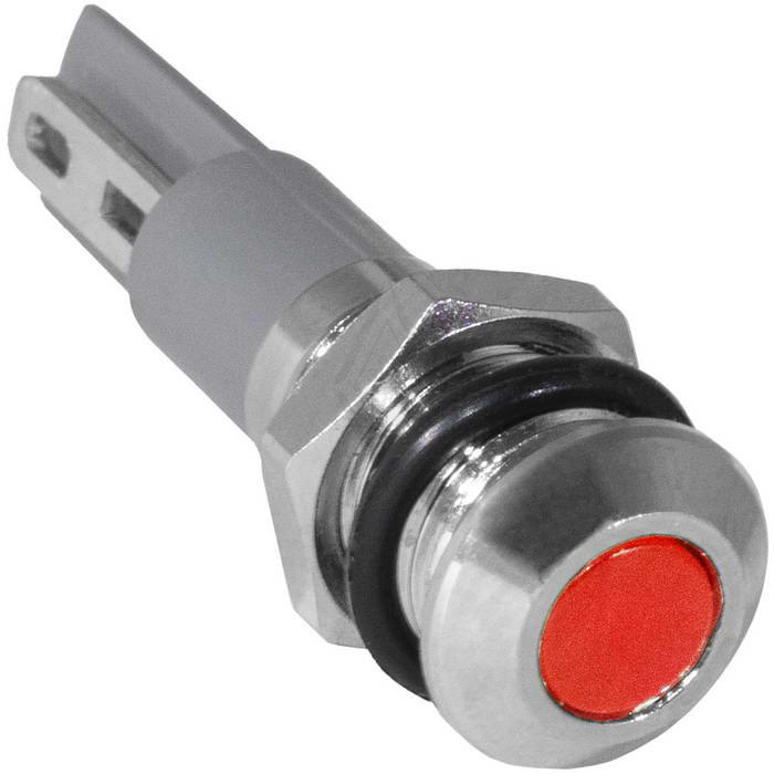 Индикатор антивандальный RUICHI GQ6PF-R, цвет красный, точечный излучатель, 12-24 В, 15 мА, гибкие выводы, никелированная латунь - это источник света для демонстрации электрических процессов в приборах. Конструктивно представляет собой модуль индикации, оснащенный контактным блоком, к которому припаиваются или присоединяются проводники.