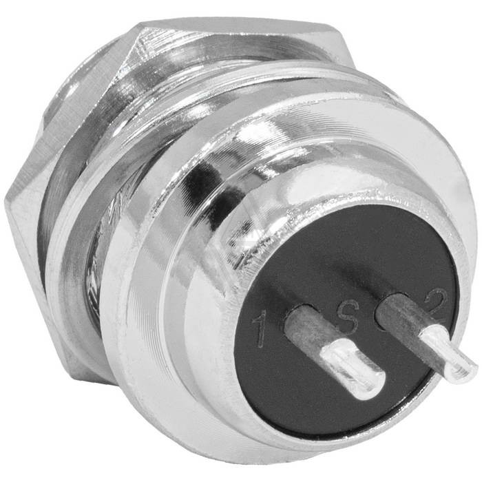 Разъём цилиндрический малогабаритный RUICHI GX12M-2C, 2 контакта представляет собой коннектор ручного соединения, внутреннего объемного монтажа. Он соединяет цепи с нагрузкой до 10 А и 200 В. Корпус соединителей изготовляется из цинка и никеля, а внутренний изолятор из бакелита. Разъемы являются пылезащищенными и соответствуют степени защиты IP 55, что гарантирует работу в пыльной среде и допускает попадания брызг воды.