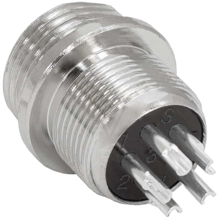 Разъём цилиндрический малогабаритный RUICHI GX12M-5, 5 контактов представляет собой коннектор ручного соединения, внутреннего объемного монтажа. Он соединяет цепи с нагрузкой до 10 А и 200 В. Корпус соединителей изготовляется из цинка и никеля, а внутренний изолятор из бакелита. Разъемы являются пылезащищенными и соответствуют степени защиты IP 55, что гарантирует работу в пыльной среде и допускает попадания брызг воды.