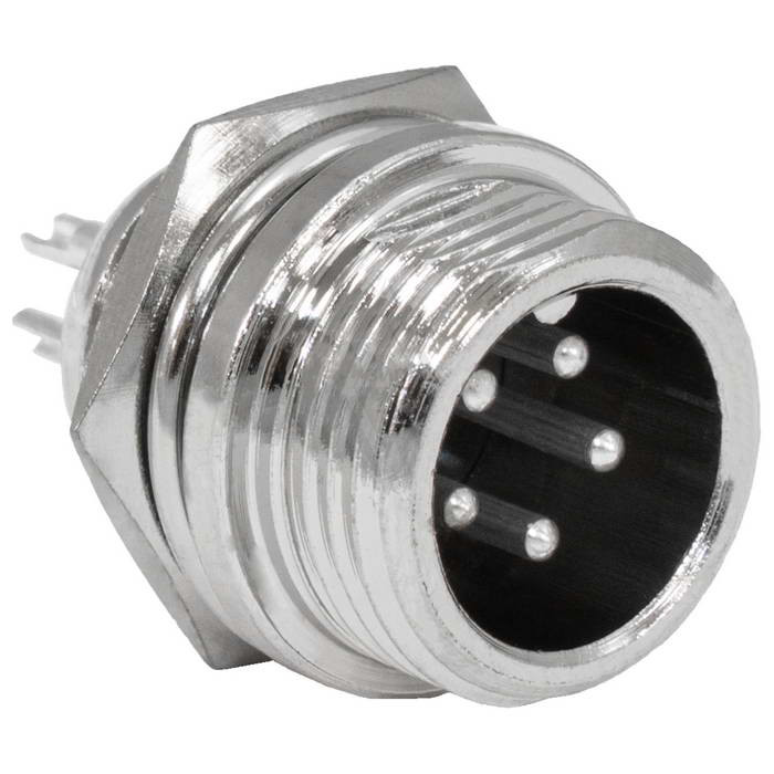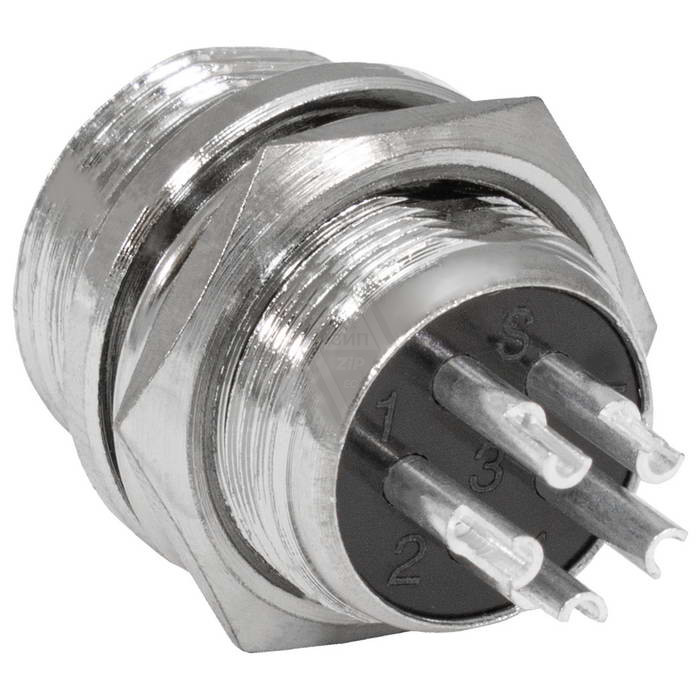 Разъём цилиндрический малогабаритный RUICHI GX12M-5B, 5 контактов представляет собой коннектор ручного соединения, внутреннего объемного монтажа. Он соединяет цепи с нагрузкой до 10 А и 200 В. Корпус соединителей изготовляется из цинка и никеля, а внутренний изолятор из бакелита. Разъемы являются пылезащищенными и соответствуют степени защиты IP 55, что гарантирует работу в пыльной среде и допускает попадания брызг воды.