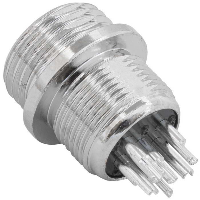 Разъем цилиндрический малогабаритный представляют собой коннектор ручного соединения, внутреннего объемного монтажа. Он соединяют цепи с нагрузкой до 10 А и 200 В. Корпус соединителей изготовляется из цинка и никеля, а внутренний изолятор из бакелита. Разъемы являются пылезащищенными и соответствуют степени защиты IP55, что гарантирует работу в пыльной среде и допускает попадания брызг воды.