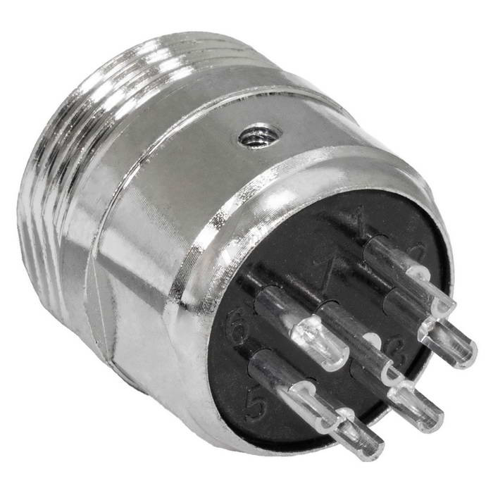 Разъём цилиндрический малогабаритный RUICHI GX16M-7, 7 контактов представляет собой коннектор ручного соединения, внутреннего объемного монтажа. Он соединяет цепи с нагрузкой до 10 А и 200 В. Корпус соединителей изготовляется из цинка и никеля, а внутренний изолятор из бакелита. Разъемы являются пылезащищенными и соответствуют степени защиты IP 55, что гарантирует работу в пыльной среде и допускает попадания брызг воды.