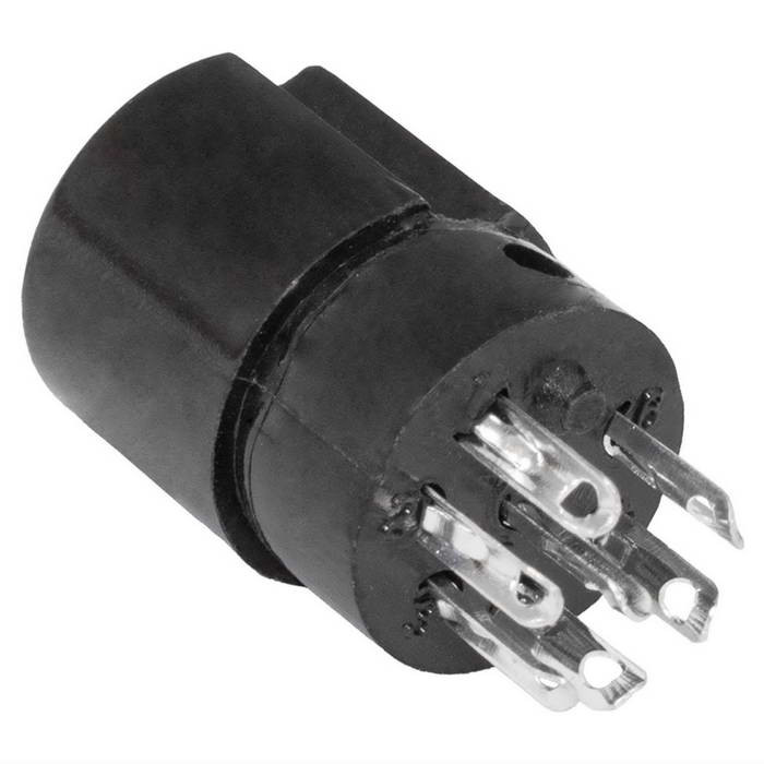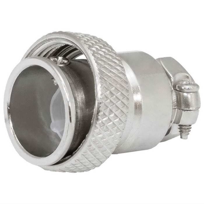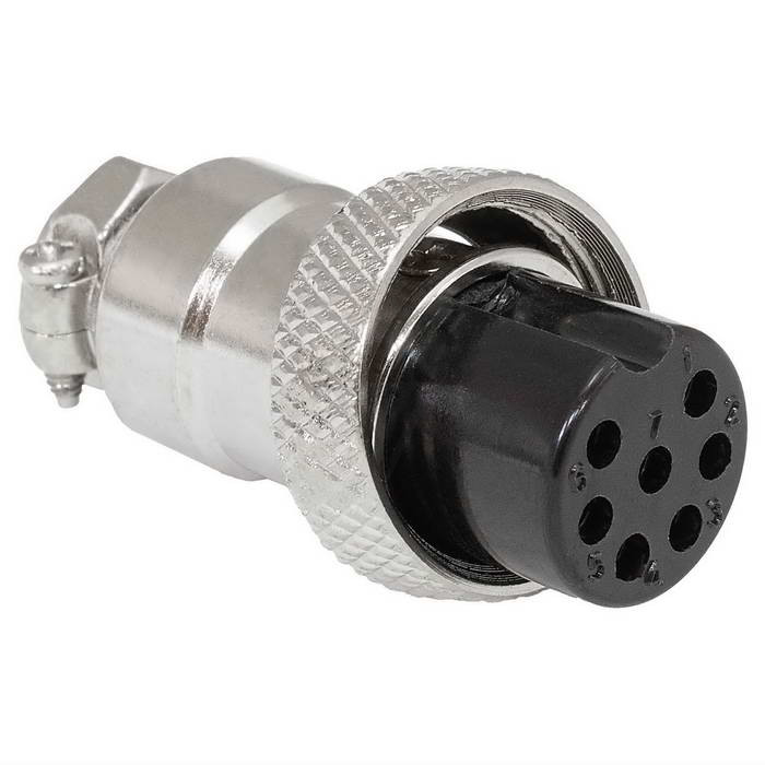 Разъём цилиндрический малогабаритный RUICHI GX16M-7A, 7 контактов представляет собой коннектор ручного соединения, внутреннего объемного монтажа. Он соединяет цепи с нагрузкой до 10 А и 200 В. Корпус соединителей изготовляется из цинка и никеля, а внутренний изолятор из бакелита. Разъемы являются пылезащищенными и соответствуют степени защиты IP 55, что гарантирует работу в пыльной среде и допускает попадания брызг воды.