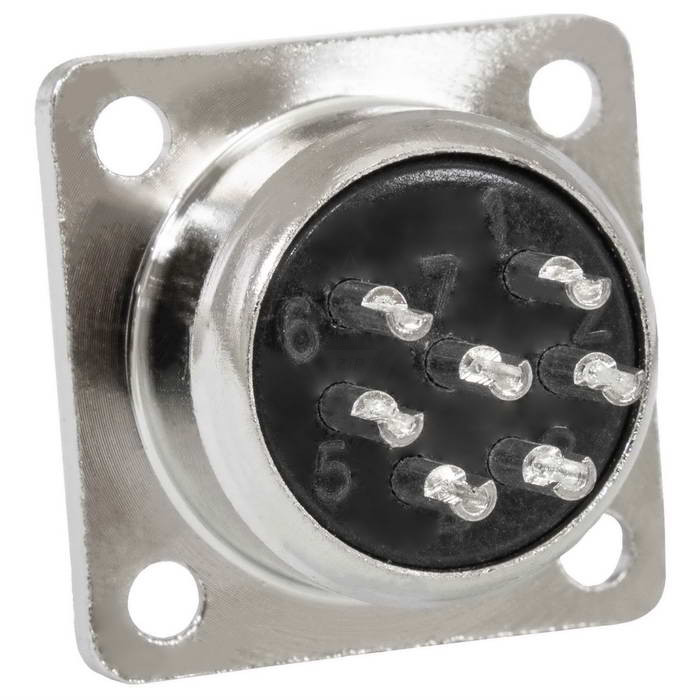 Разъём цилиндрический малогабаритный RUICHI GX16M-7F, 7 контактов представляет собой коннектор ручного соединения, внутреннего объемного монтажа. Он соединяет цепи с нагрузкой до 10 А и 200 В. Корпус соединителей изготовляется из цинка и никеля, а внутренний изолятор из бакелита. Разъемы являются пылезащищенными и соответствуют степени защиты IP 55, что гарантирует работу в пыльной среде и допускает попадания брызг воды.