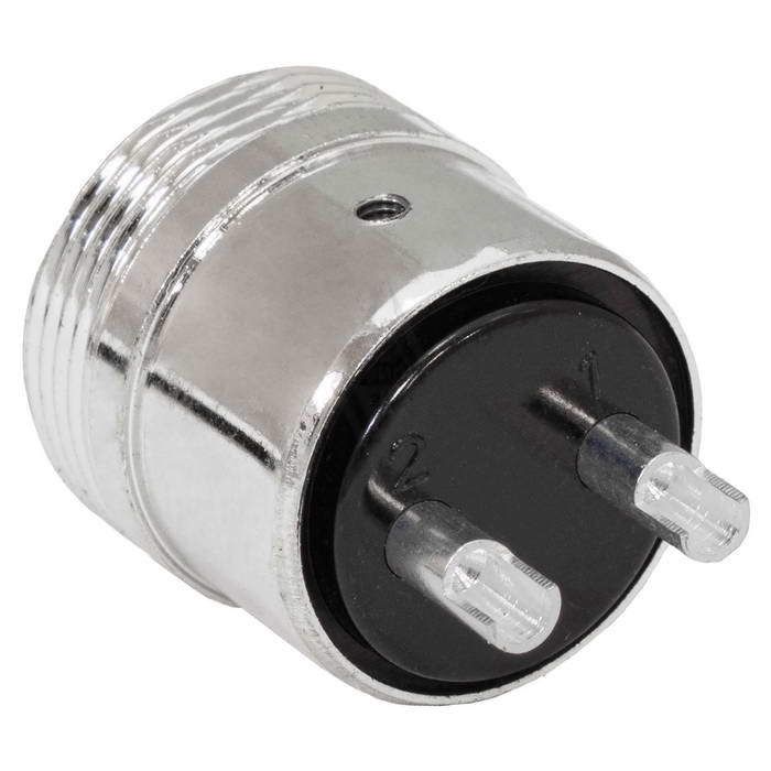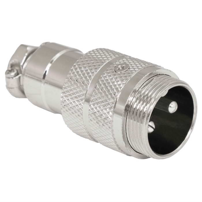 Разъём цилиндрический малогабаритный SZC GX20M-2, 2 контакта представляет собой коннектор ручного соединения, внутреннего объемного монтажа. Он соединяет цепи с нагрузкой до 10 А и 200 В. Корпус соединителей изготовляется из цинка и никеля, а внутренний изолятор из бакелита. Разъемы являются пылезащищенными и соответствуют степени защиты IP 55, что гарантирует работу в пыльной среде и допускает попадания брызг воды.