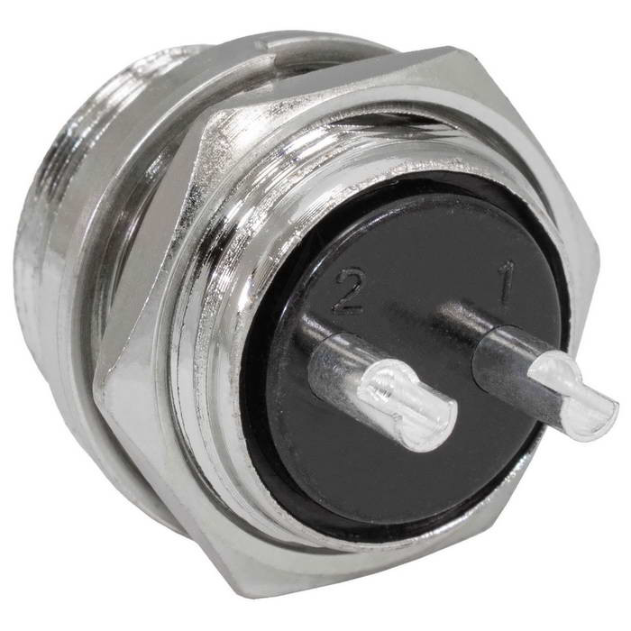 Разъём цилиндрический малогабаритный SZC GX20M-2B, 2 контакта представляет собой коннектор ручного соединения, внутреннего объемного монтажа. Он соединяет цепи с нагрузкой до 10 А и 200 В. Корпус соединителей изготовляется из цинка и никеля, а внутренний изолятор из бакелита. Разъемы являются пылезащищенными и соответствуют степени защиты IP 55, что гарантирует работу в пыльной среде и допускает попадания брызг воды.