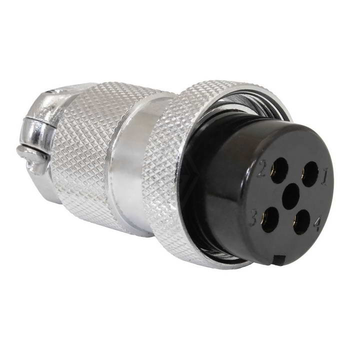 Разъём цилиндрический малогабаритный RUICHI GX25M-4A, 4 контакта представляет собой коннектор ручного соединения, внутреннего объемного монтажа. Он соединяет цепи с нагрузкой до 10 А и 200 В. Корпус соединителей изготовляется из цинка и никеля, а внутренний изолятор из бакелита. Разъемы являются пылезащищенными и соответствуют степени защиты IP 55, что гарантирует работу в пыльной среде и допускает попадания брызг воды.
