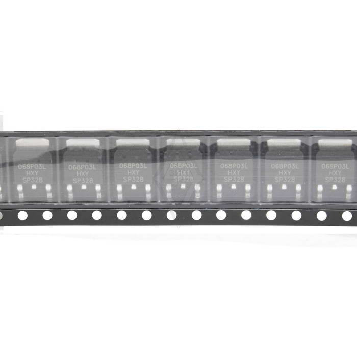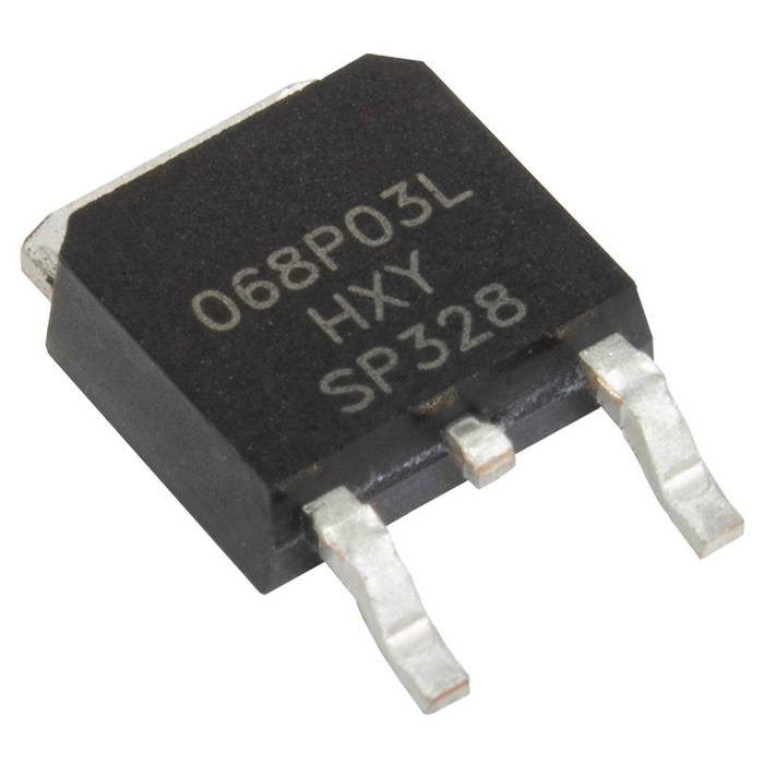 IPD068P03L3G N-канальный полевой транзистор для поверхностного монтажа в корпусе TO-252 (DPAK). Напряжение сток-исток -30 Вольт, максимальный ток стока -80 А. Сопротивление канала в открытом состоянии 8.8 мОм (при Vgs=-10 В, Id =-12 А), заряд затвора 45 нКл.