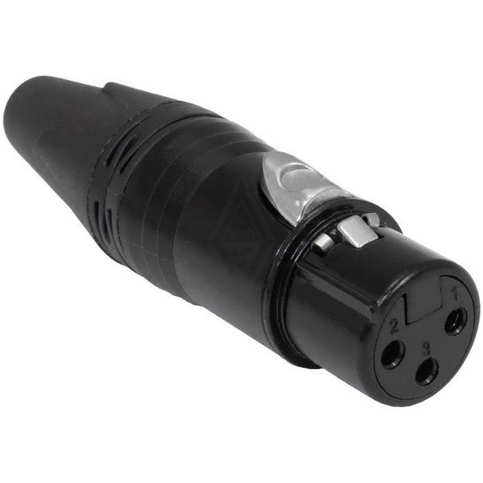 Разъём микрофонный XLR RUICHI JD-377 гнездо на кабель с фиксатором 3-контакта, использует балансовый метод подключения. Наиболее часто применяется в аудио-видео аппаратуре, а также для различного вида светового оборудования. Разъёмы XLR используются для симметричной передачи сигнала. Корпус обеспечивает дополнительную степень безопасности и защищенности для внутренних контактов
