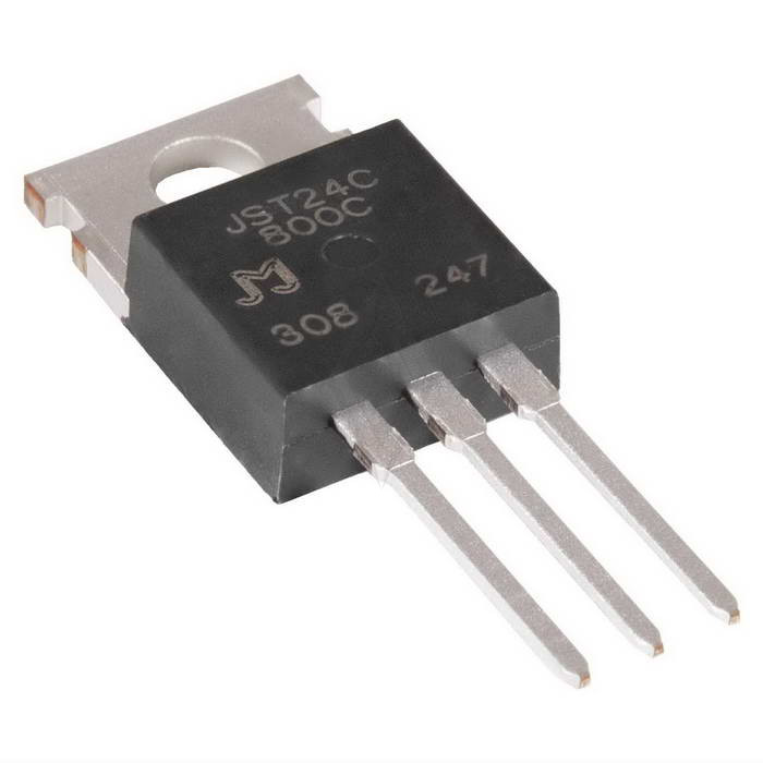 JST24C-800C четырехквадрантный симистор (триак) для сквозного монтажа в корпусе TO-3P. Максимальное обратное напряжение 800 Вольт, максимальный коммутируемый ток 25 Ампер, предельная скорость нарастания обратного напряжения (dV/dt) 500 В/мкс.