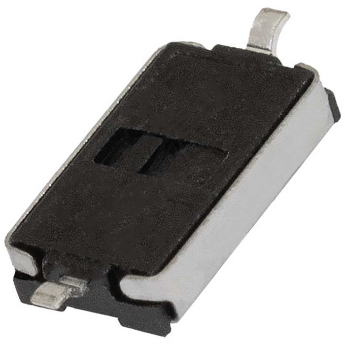 Тактовая кнопка RUICHI KAN0441-0252B, 6.1x3.7x2.5 мм, OFF-(ON), SPST, 50 мА, 12 В, 100 мОм – это разновидность простейших механических выключателей, обеспечивающая замыкание контактов (без фиксации) только при наличии давления на поверхность штока (толкателя).