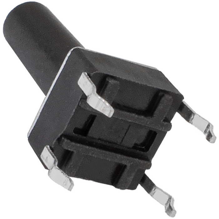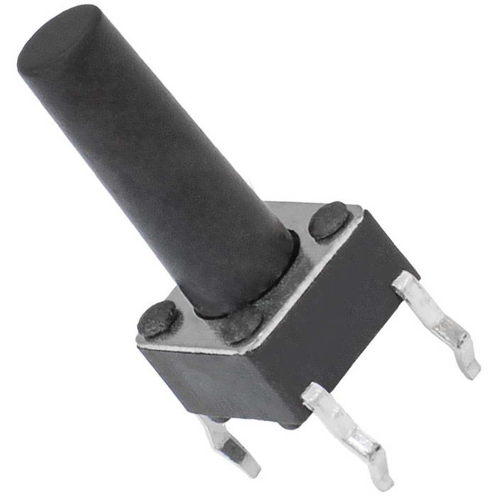 Тактовая кнопка RUICHI KAN0611-1301B, 6x6x13 мм, OFF-(ON), 50 мА, 12 В, 100 мОм – это разновидность простейших механических выключателей, обеспечивающая замыкание контактов (без фиксации) только при наличии давления на поверхность штока (толкателя).