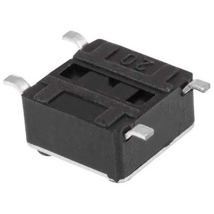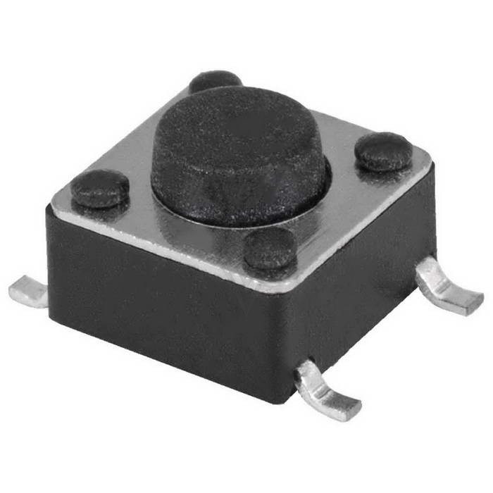 Тактовая кнопка RUICHI KAN0641-0431B, 6x6x4.3 мм, OFF-(ON), 50 мА, 12 В, 50 мОм – это разновидность простейших механических выключателей, обеспечивающая замыкание контактов (без фиксации) только при наличии давления на поверхность штока (толкателя).