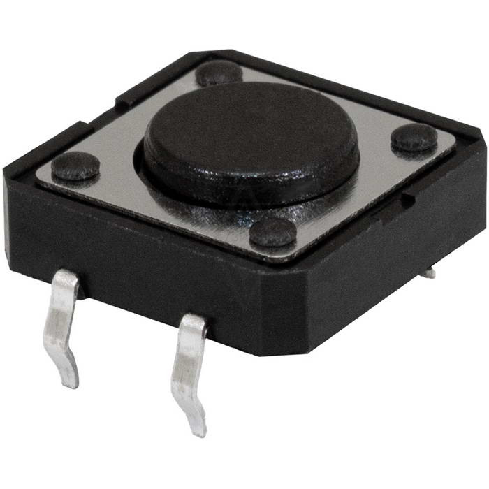Тактовая кнопка RUICHI KAN1211-0431B, 12х12х4.3 мм, OFF-(ON), 50 мА, 12 В, 100 мОм – это разновидность простейших механических выключателей, обеспечивающая замыкание контактов (без фиксации) только при наличии давления на поверхность штока (толкателя).